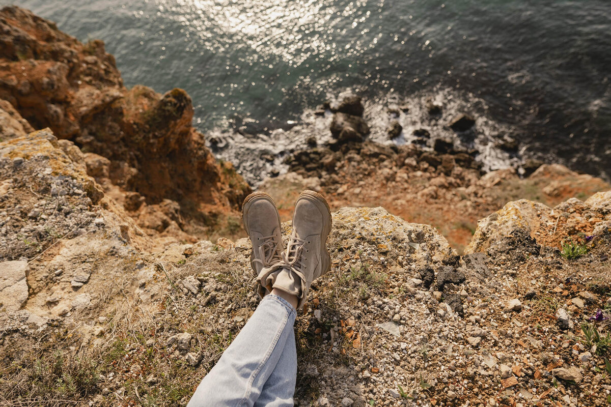 Link to Photo23, Las piernas de una persona en un acantilado sobre el agua